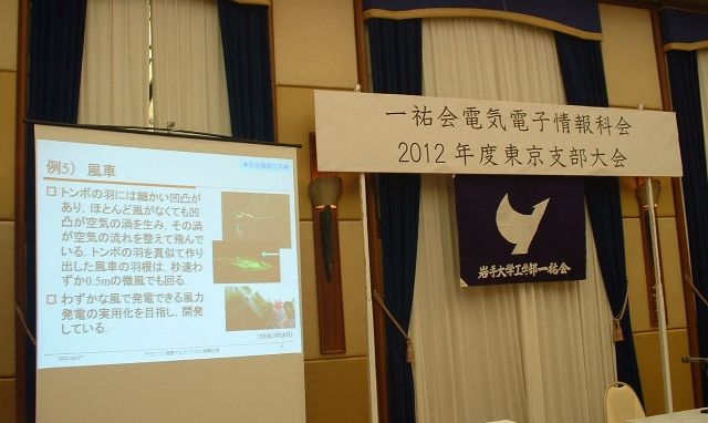 ![]() ![]() ![]() 自然界や生物に学ぶという研究は、会場の会員に大きな感銘を与えました 母校の研究が実際に産業界でお役に立っている、ということを知り得たことは良かったと思います ご講演の模様はコチラをご覧下さい |