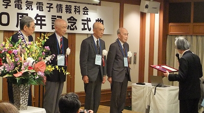![]() 澤藤支部長、柏葉科会長、渡邉一祐会長、寺井祝賀会実行委員長 |
