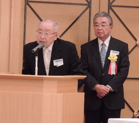 ![]() 開式の辞…栃内淳志氏(冶金25年)後方は司会の小野寺瑞穂氏(電気29年) |