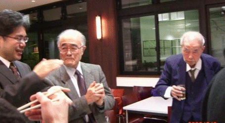 阿部源祐相談役と斎藤健仙台支部長 太田原相談役が大先輩の小澤甚一郎相談役(左)と高木三郎相談役(右)に挨拶
